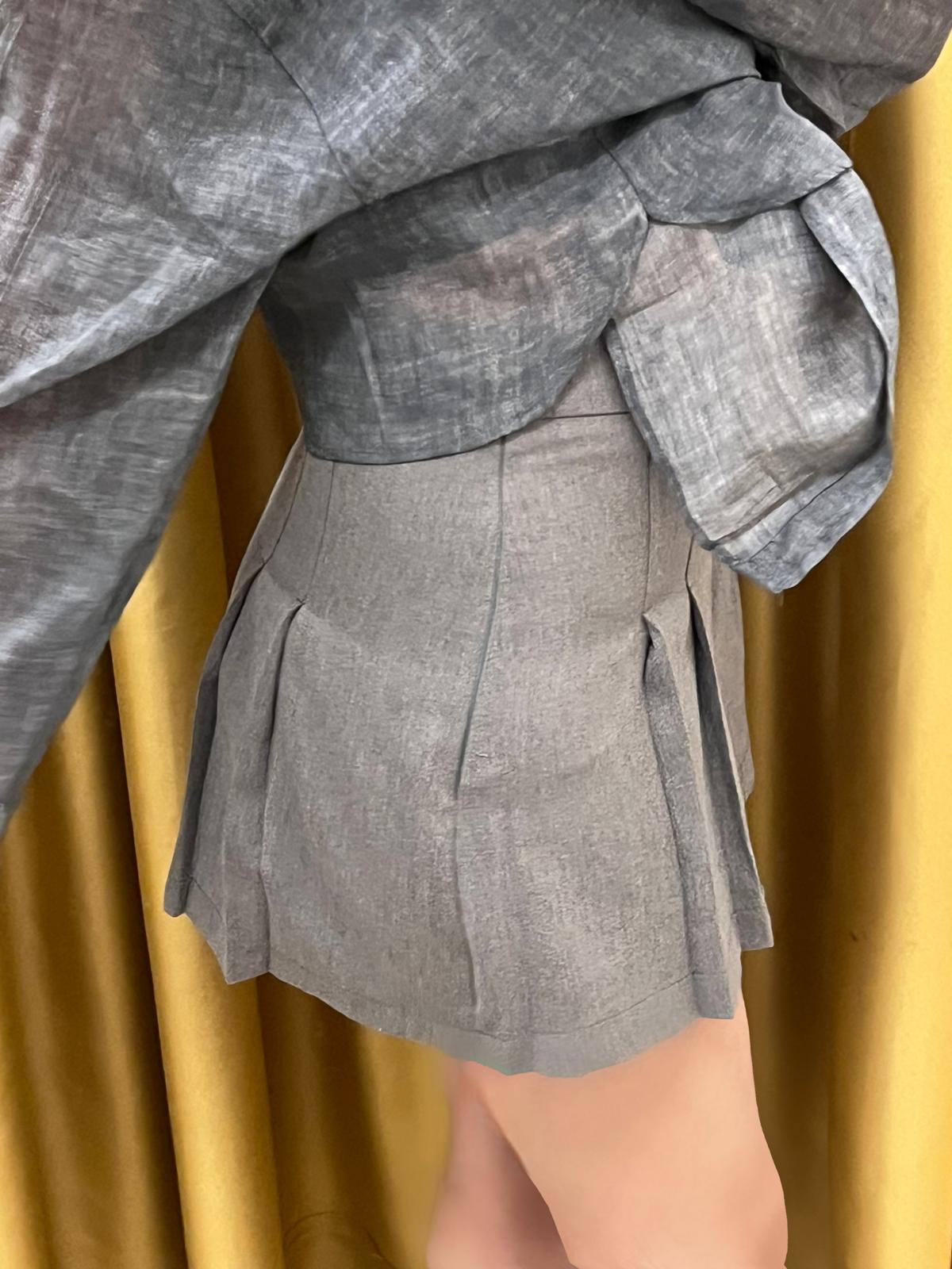 Gri Pileli Şort Etek